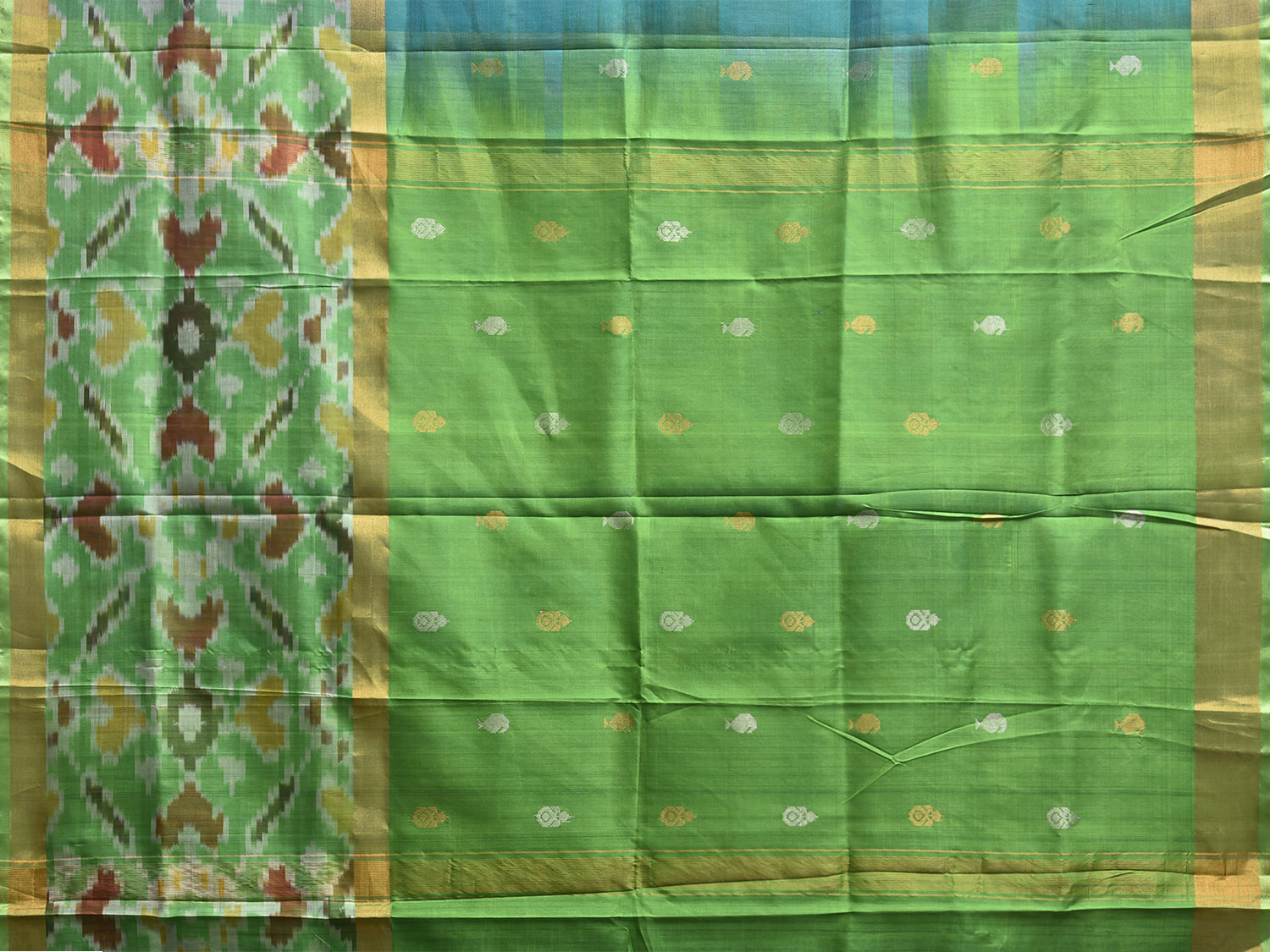 Light Blue and Green Uppada Silk Handloom Saree with One Side Ikat Border Design u2429