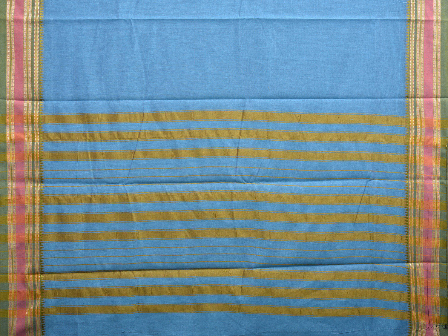Light Blue and Olive Bamboo Cotton Plain Saree with Strips Pallu Design No Blouse bc0408