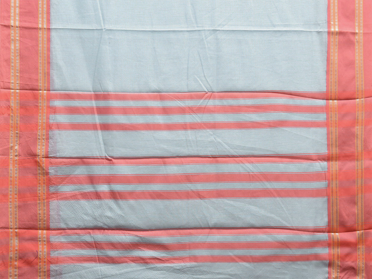 Light Blue and Peach Bamboo Cotton Saree with Small Checks Design No Blouse bc0900