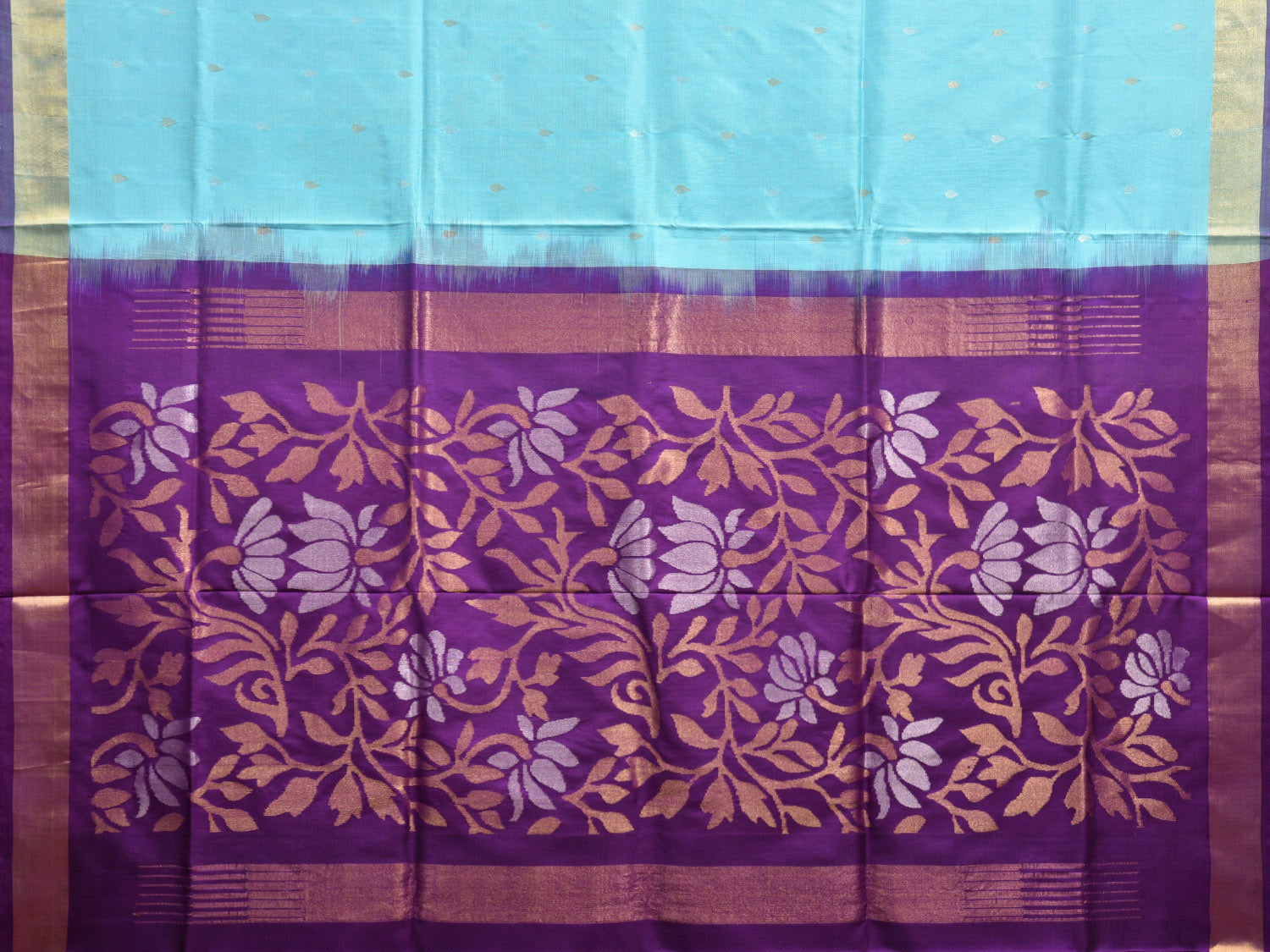 Light Blue and Purple Uppada Silk Handloom Saree with Contrast Floral Pallu Design u2285