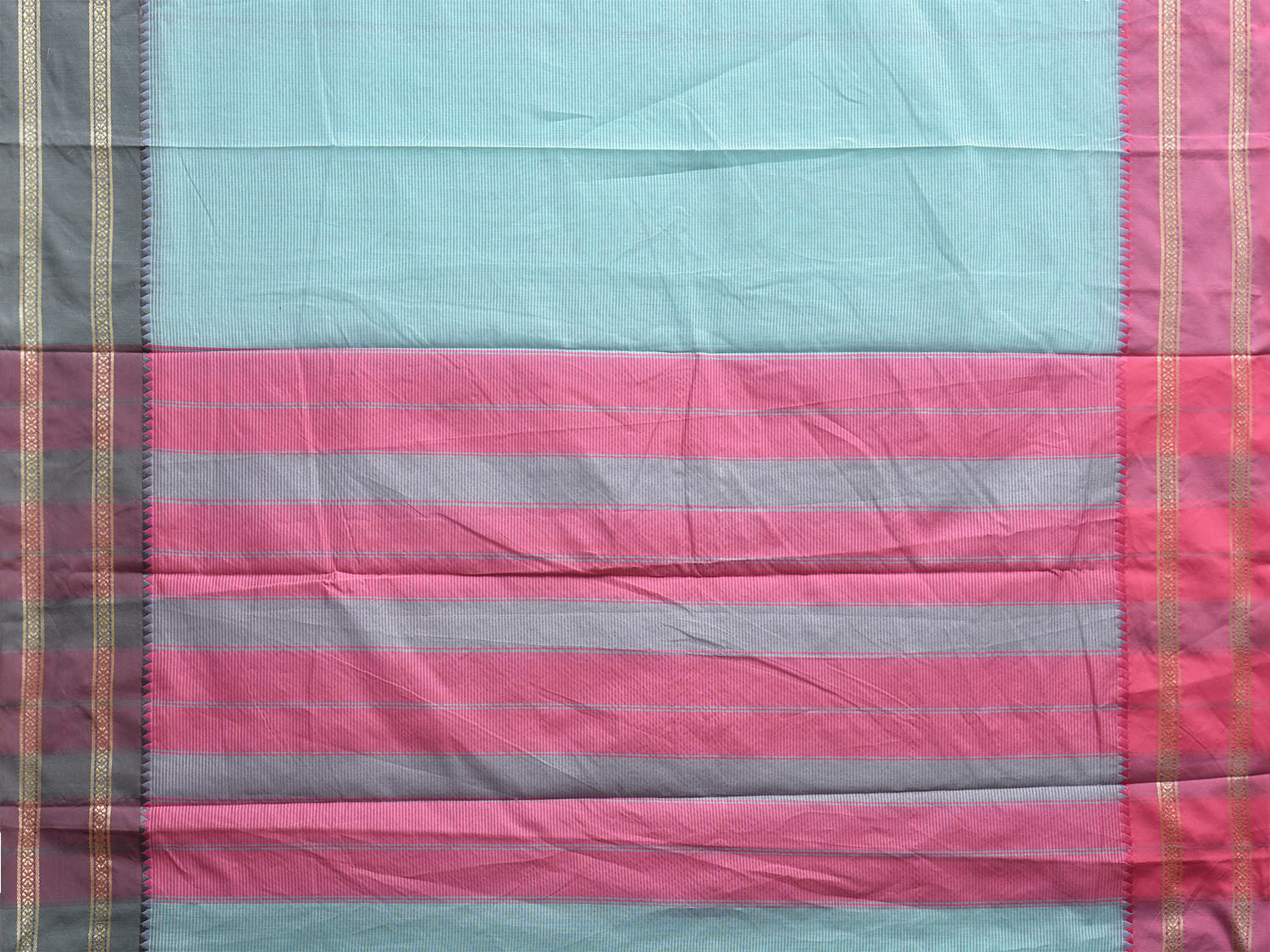 Light Blue Bamboo Cotton Saree with Strips and Ganga-Jamuna Border Design No Blouse bc0723