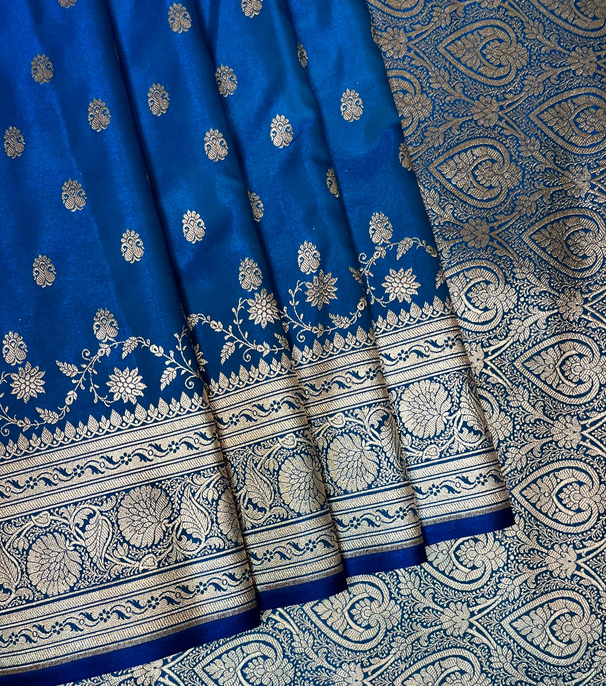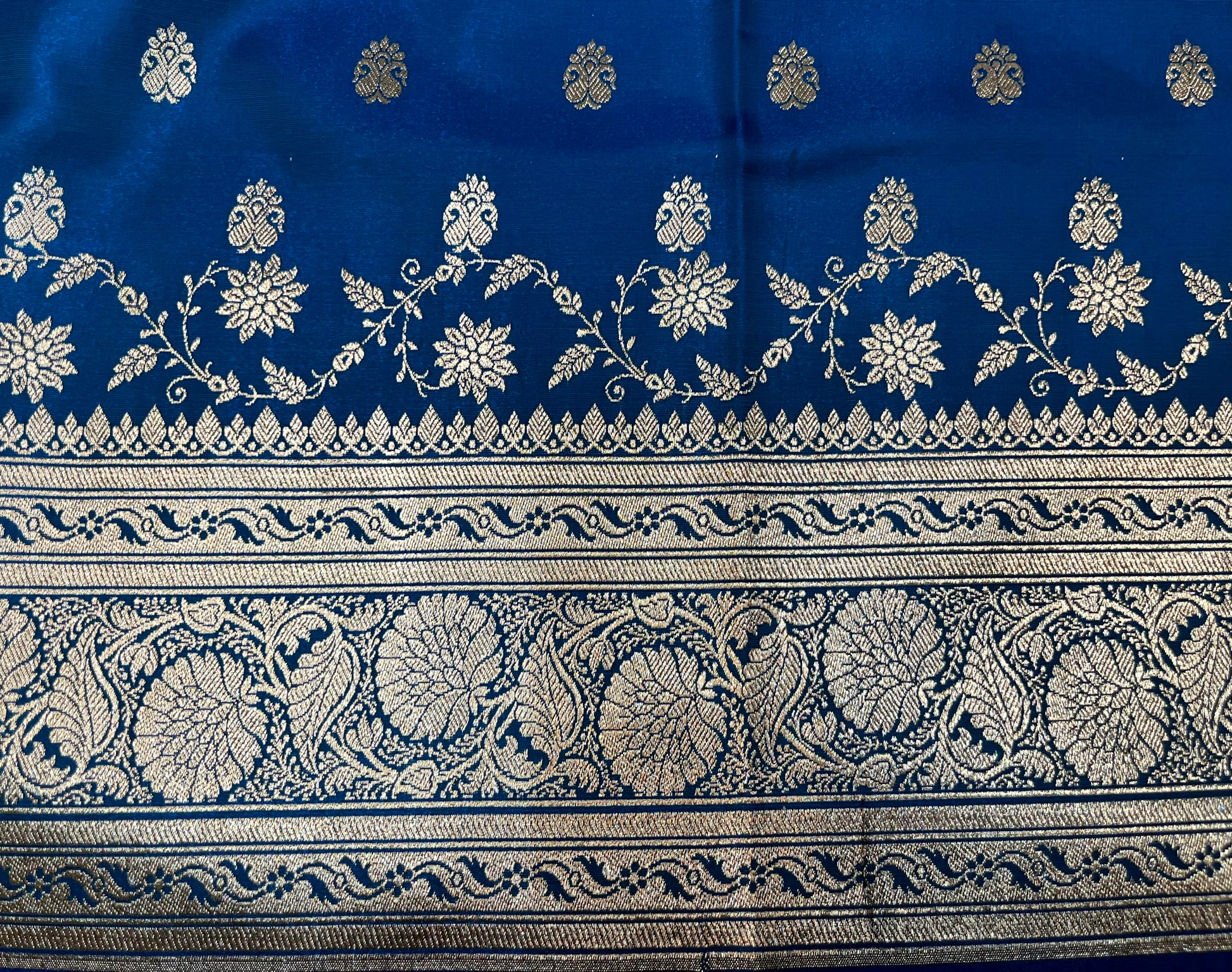 Light Blue Katan Banarasi Saree with Silver Zari Floral Weaving And Grand Pallu B0511ds