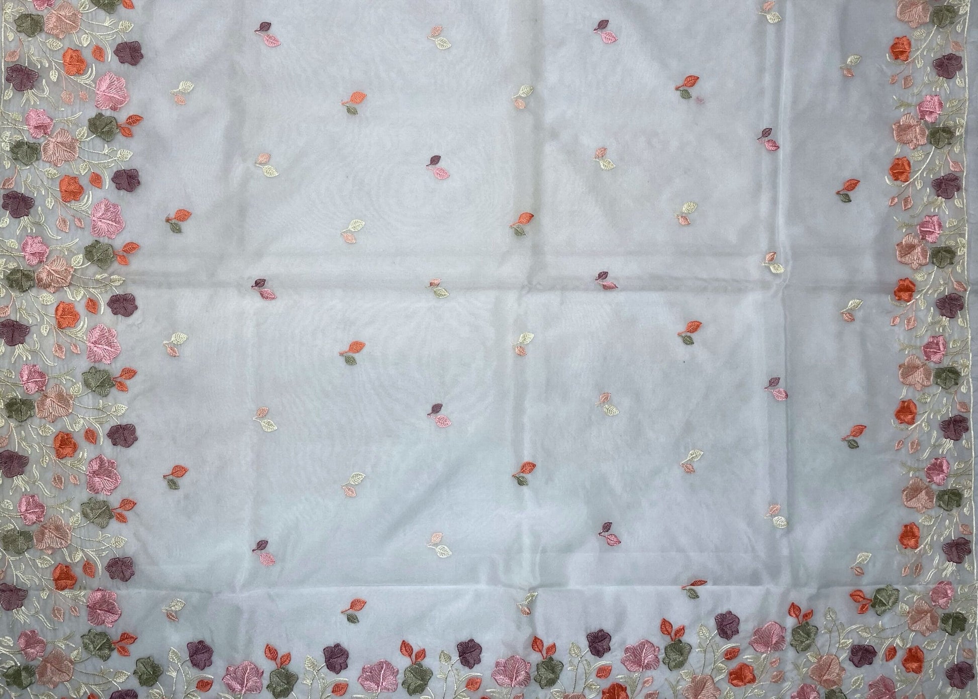 Light Blue Organza Saree Embroidery with Butta and Border Design