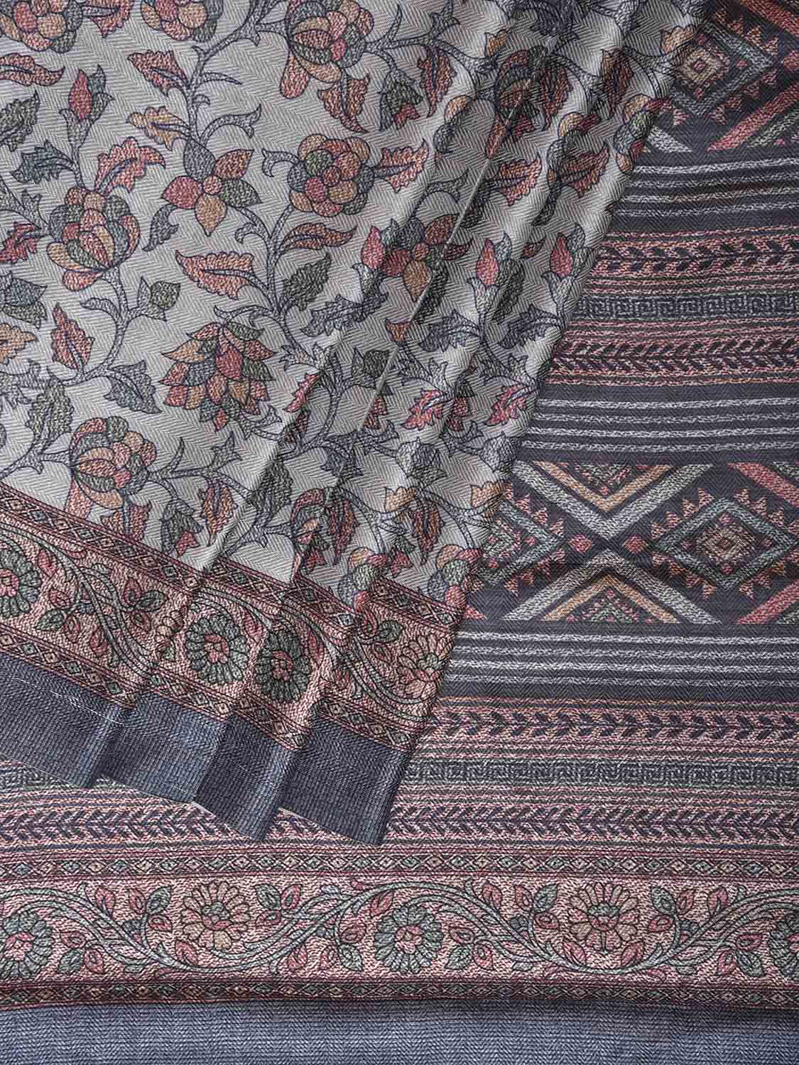 Light Blue Pashmina Print Viscose Saree with Floral Body and Pallu Design. We advice gentle handwash separately.