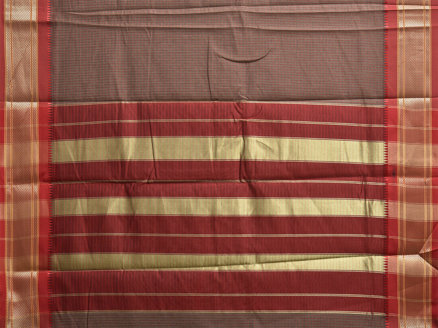 Light Brown and Dark Red Bamboo Cotton Saree with Checks Design No Blouse bc1034