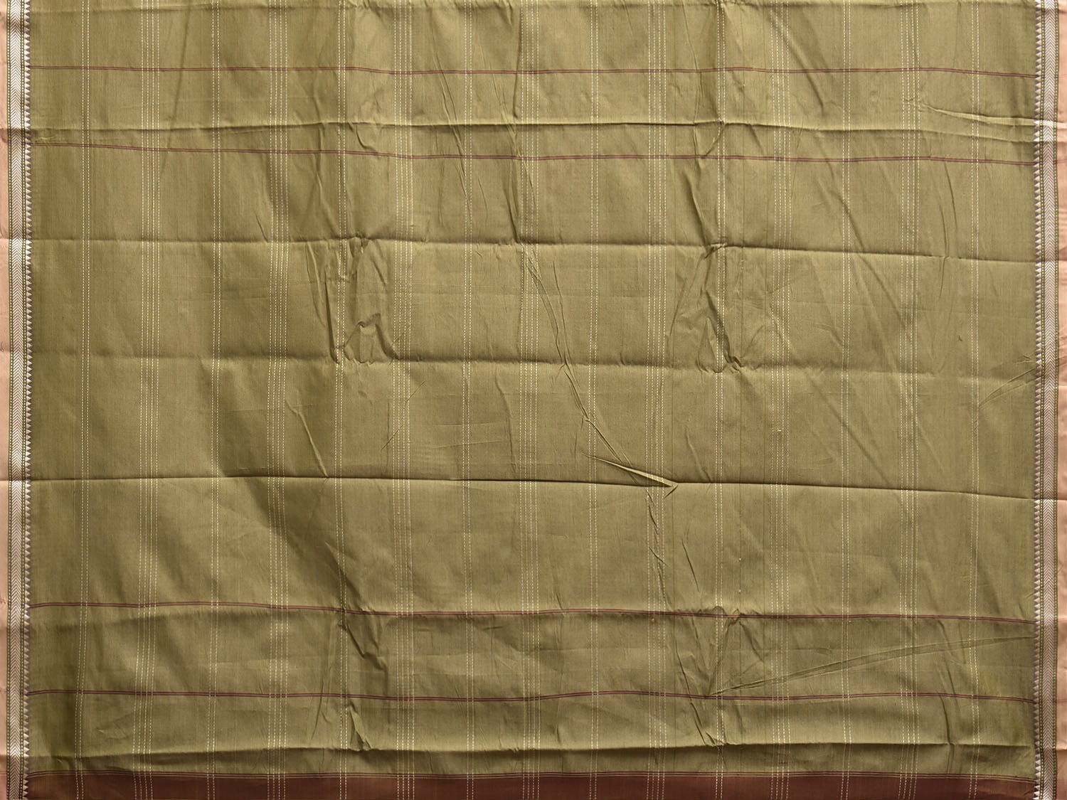 Light Brown and Light Green Narayanpet Cotton Saree with Strips Body Design No Blouse np1423