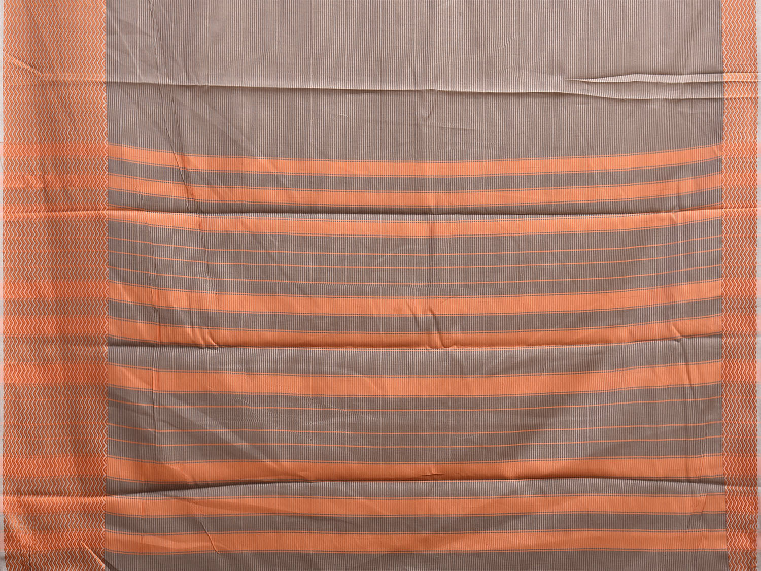 Light Brown and Orange Bamboo Cotton Saree with Strips Design No Blouse bc0992