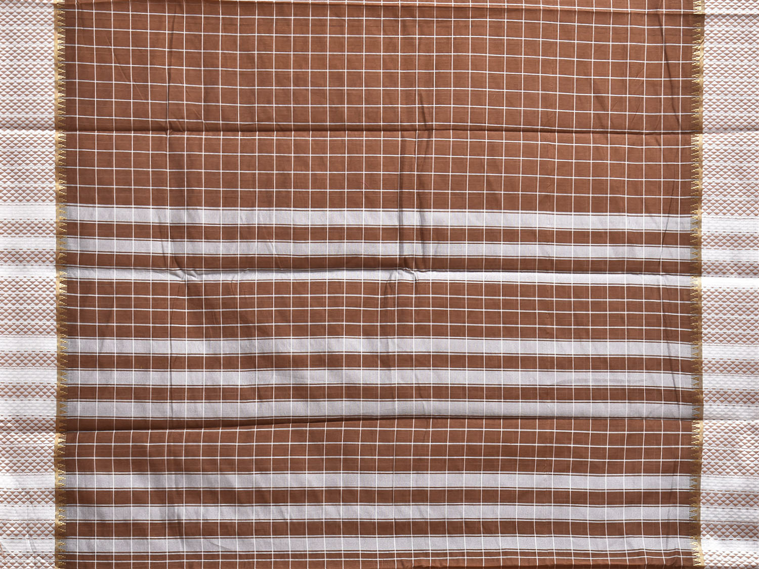 Light Brown and White Bamboo Cotton Saree with Big Checks Design No Blouse bc1060