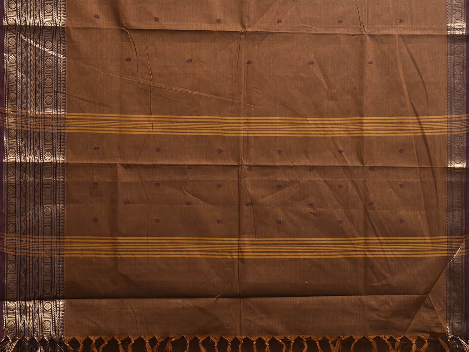 Light Brown Kanchipuram Cotton Saree with Strips Pallu and Border Design No Blouse k1036