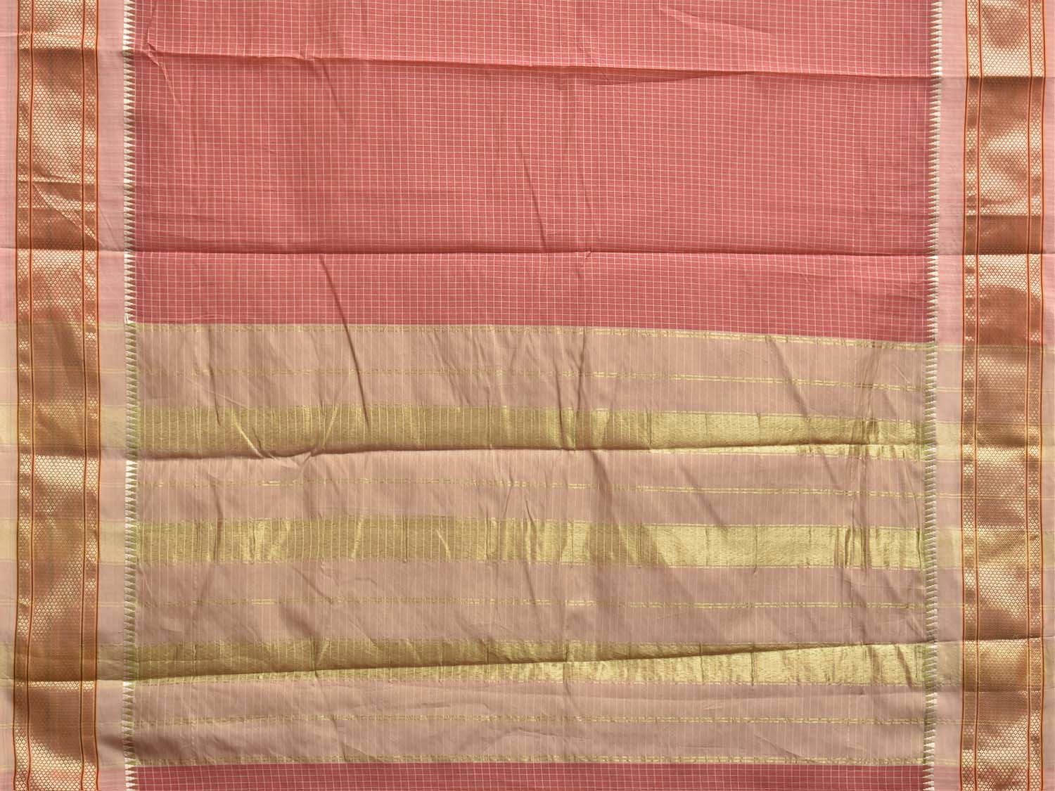 Light Burgundy and Peach Bamboo Cotton Saree with Checks Design No Blouse bc1056