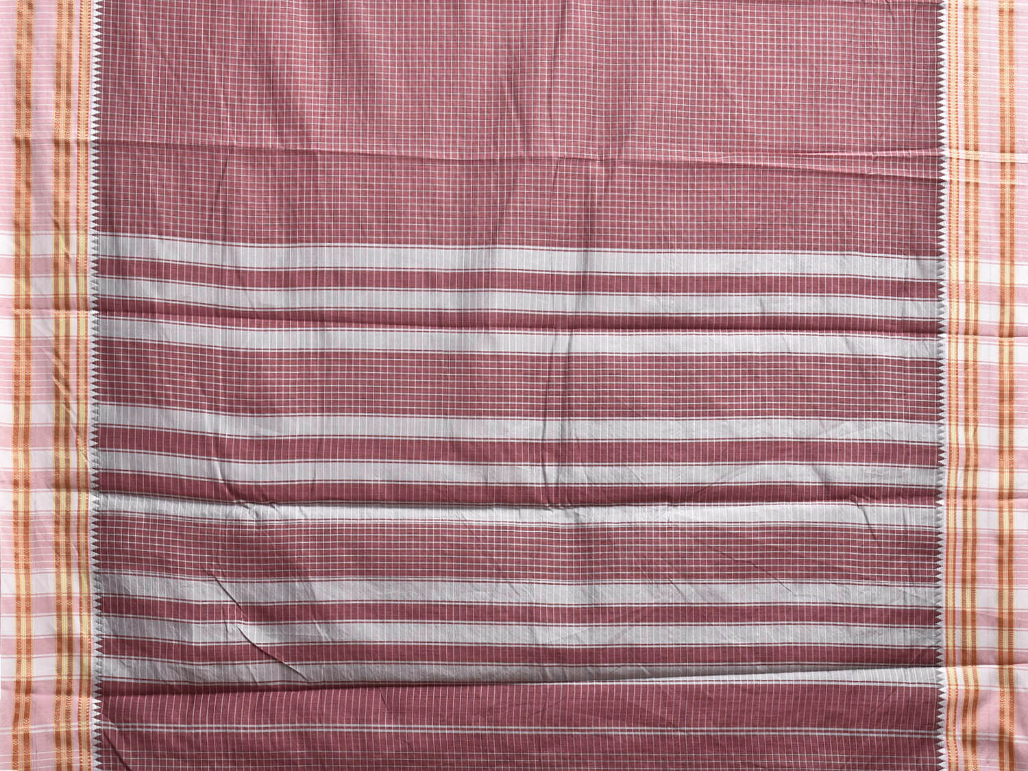 Light Burgundy and White Bamboo Cotton Saree with Checks Design No Blouse bc0861