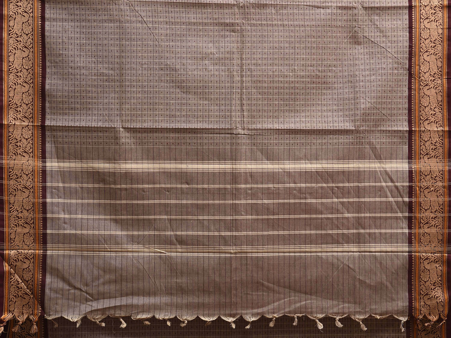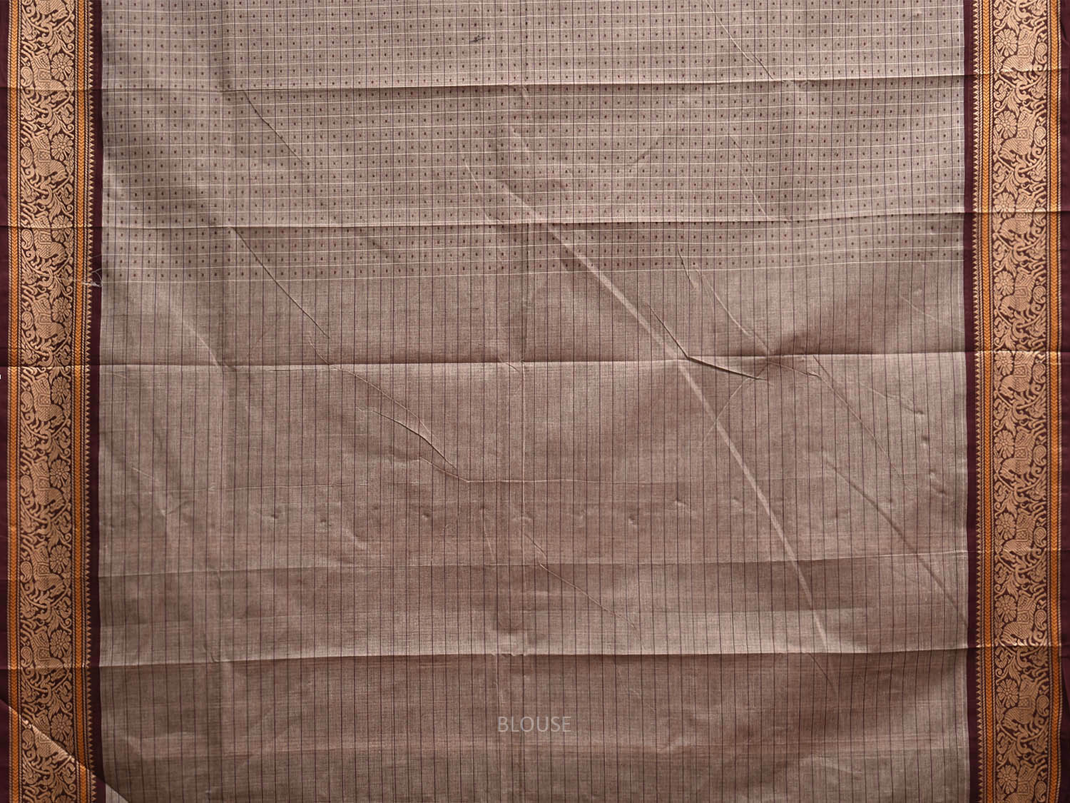 Light Fawn and Brown Kanchipuram Cotton Saree with Checks and Border Design k0933