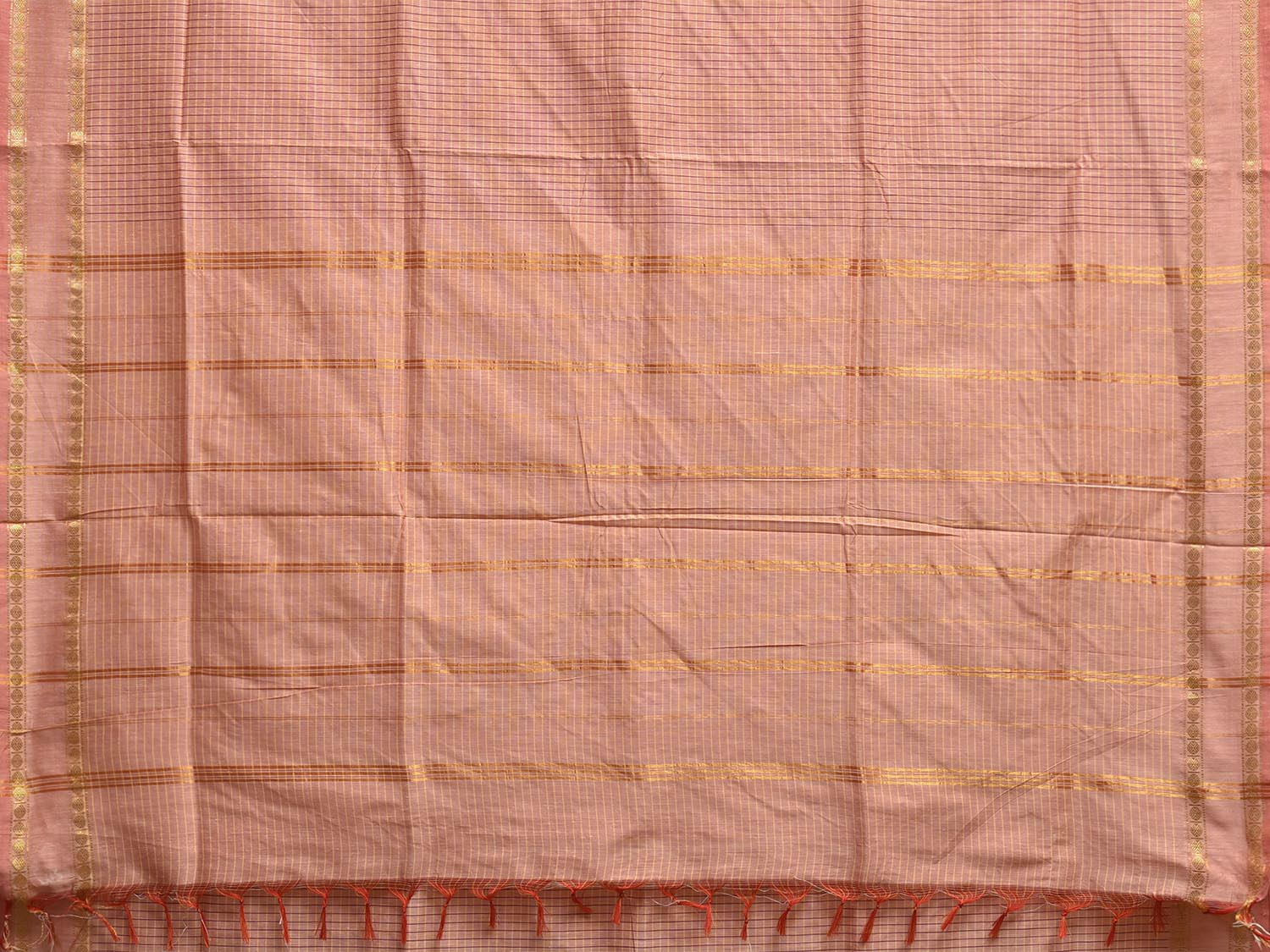 Light Fawn Gadwal Cotton Viscose Saree with Checks and Border Design g0556