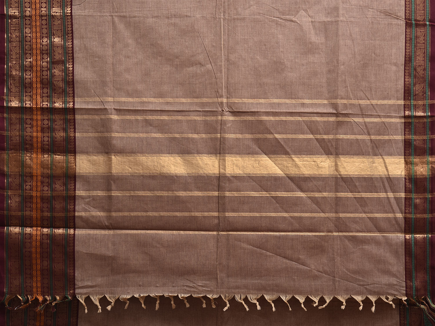 Light Fawn Kanchipuram Cotton Plain Saree with One Side Big Border Design k0910