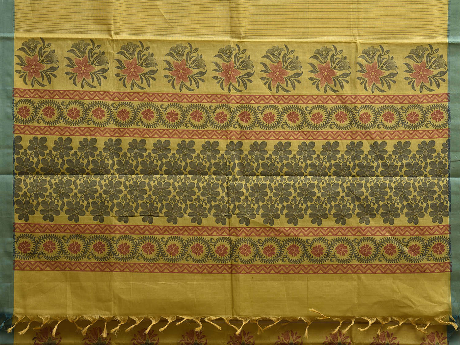 Light Green and Green Venkatagiri Cotton Saree with Floral Buta Design v0240