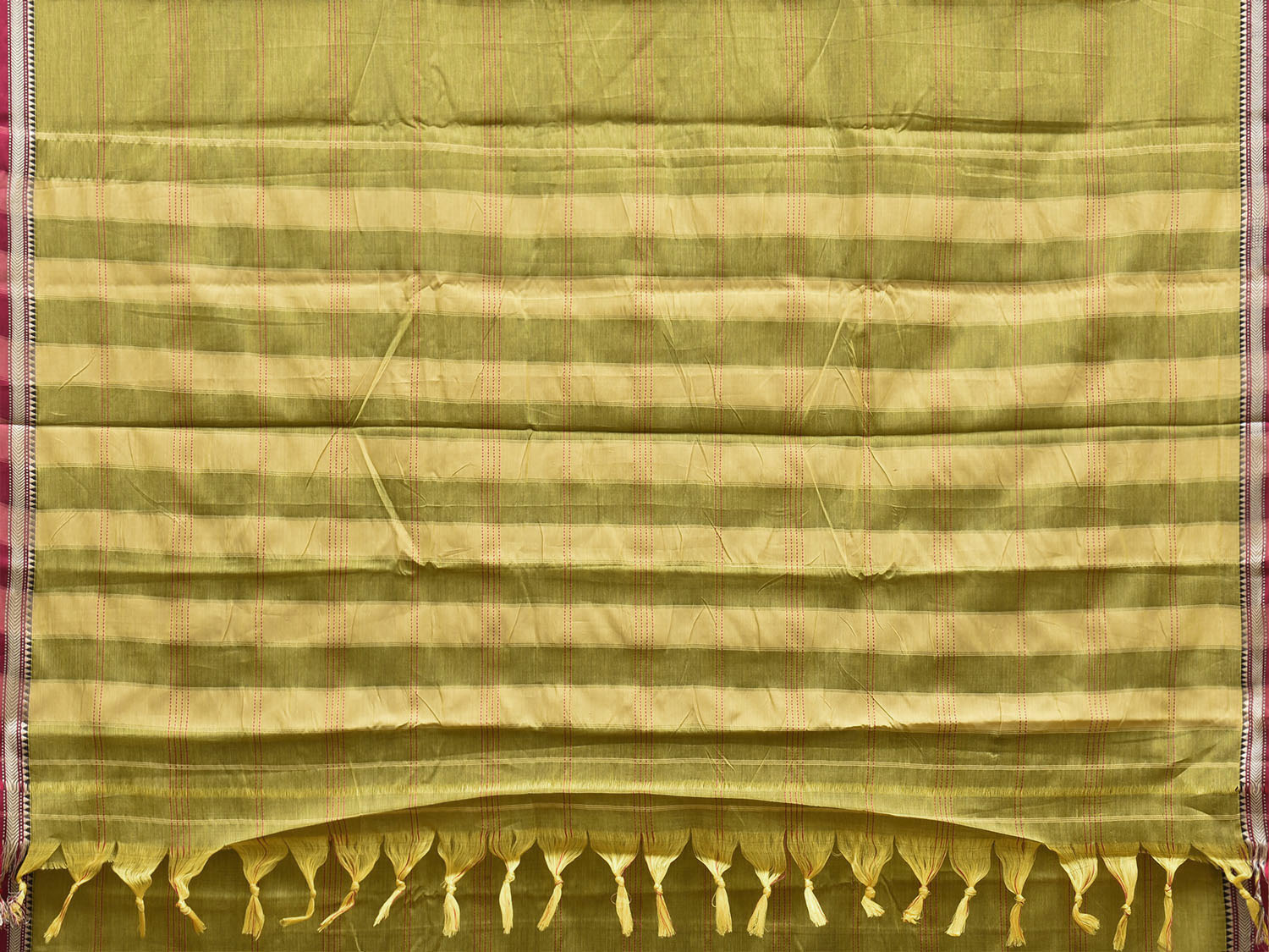 Light Green and Maroon Narayanpet Cotton Saree with Strips Body and Pallu Design No Blouse. This saree has no blouse.