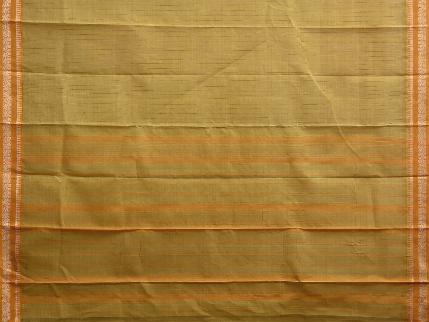 Light Green and Mustard Narayanpet Cotton Saree with Strips Body and Pallu Design No Blouse. This saree has no blouse.