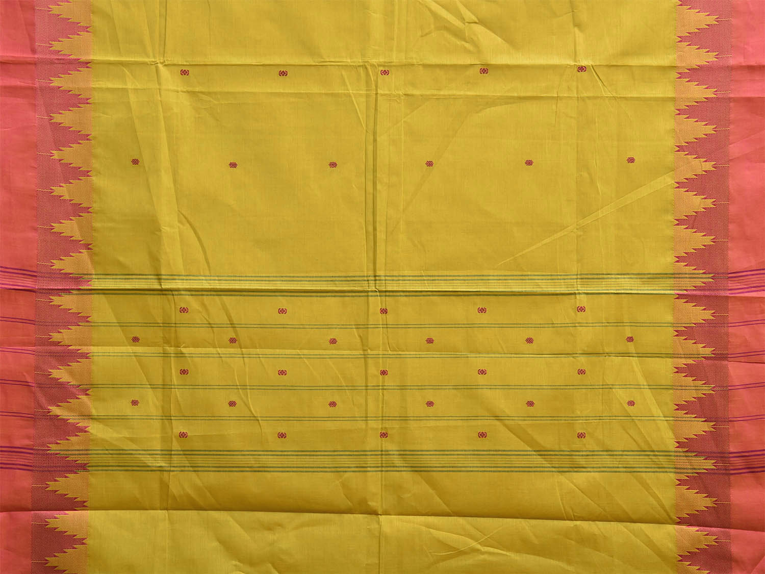 Light Green and Peach Kanchipuram Cotton Saree with Big Temple Border Design k0958