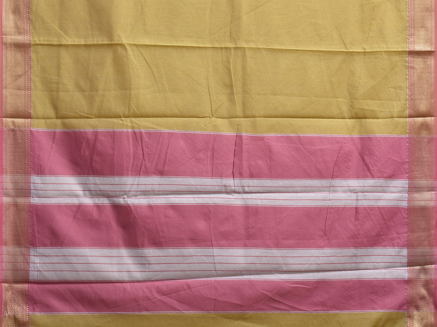 Light Green and Pink Bamboo Cotton Saree with Strips Design No Blouse bc0919