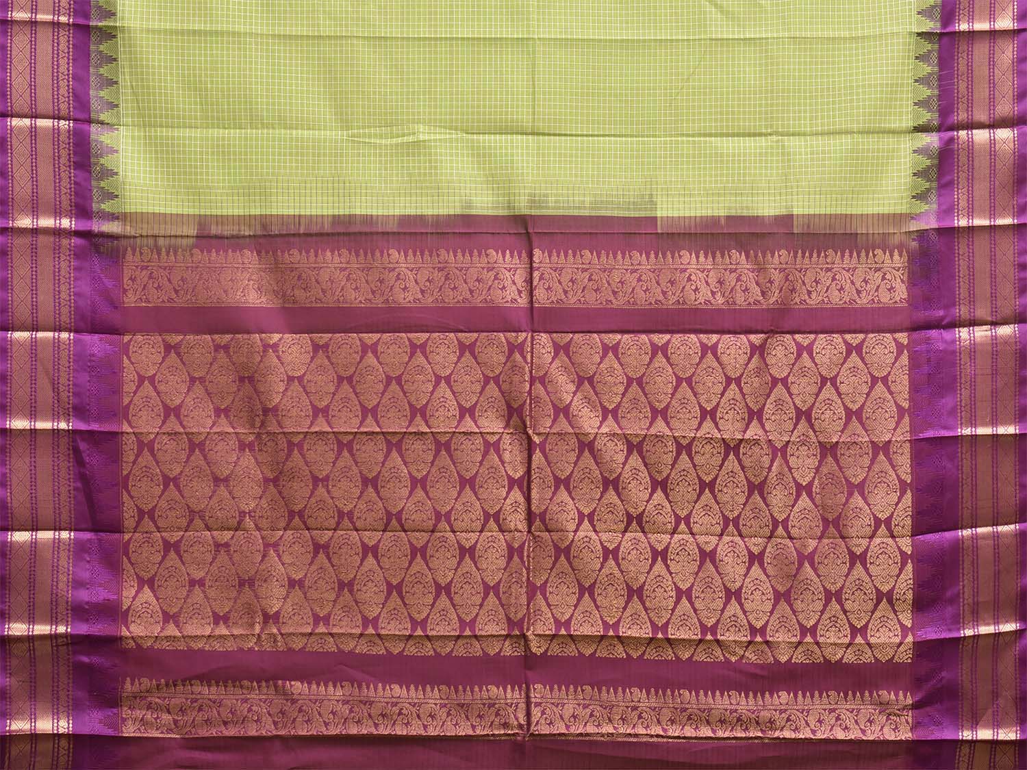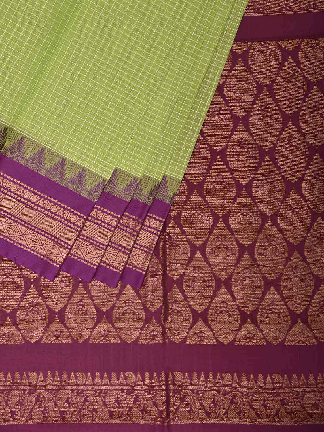 Light Green and Purple Gadwal Cotton Body Viscose Border Saree with Checks Design No Blouse g0623