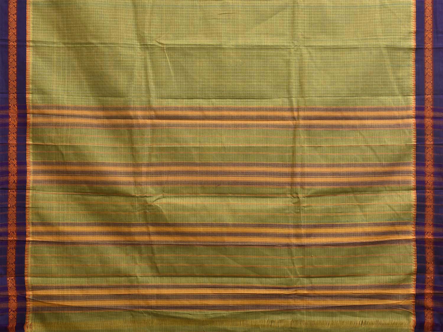 Light Green and Purple Narayanpet Cotton Handloom Saree with Checks Design No Blouse. This saree has no blouse.