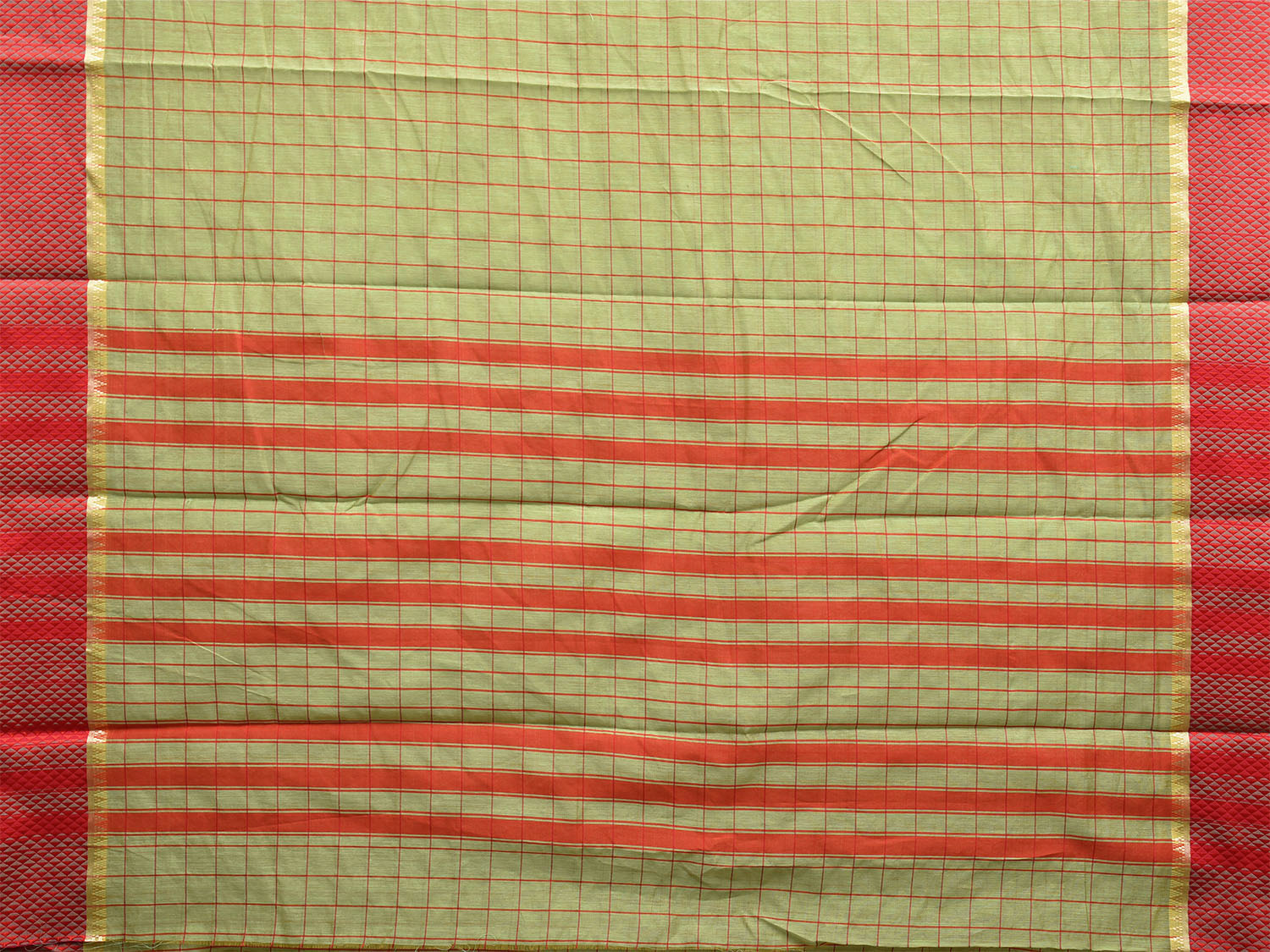 Light Green and Red Bamboo Cotton Saree with Big Checks Design No Blouse bc0453
