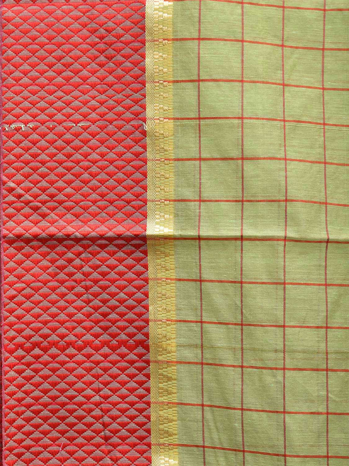 Light Green and Red Bamboo Cotton Saree with Big Checks Design No Blouse. This is a blend of bamboo and cotton fibers, they have characteristics of both bamboo and cotton combined into one fabric. We Advise Gentle Handwash for Fabric Care. This Saree has no Blouse.