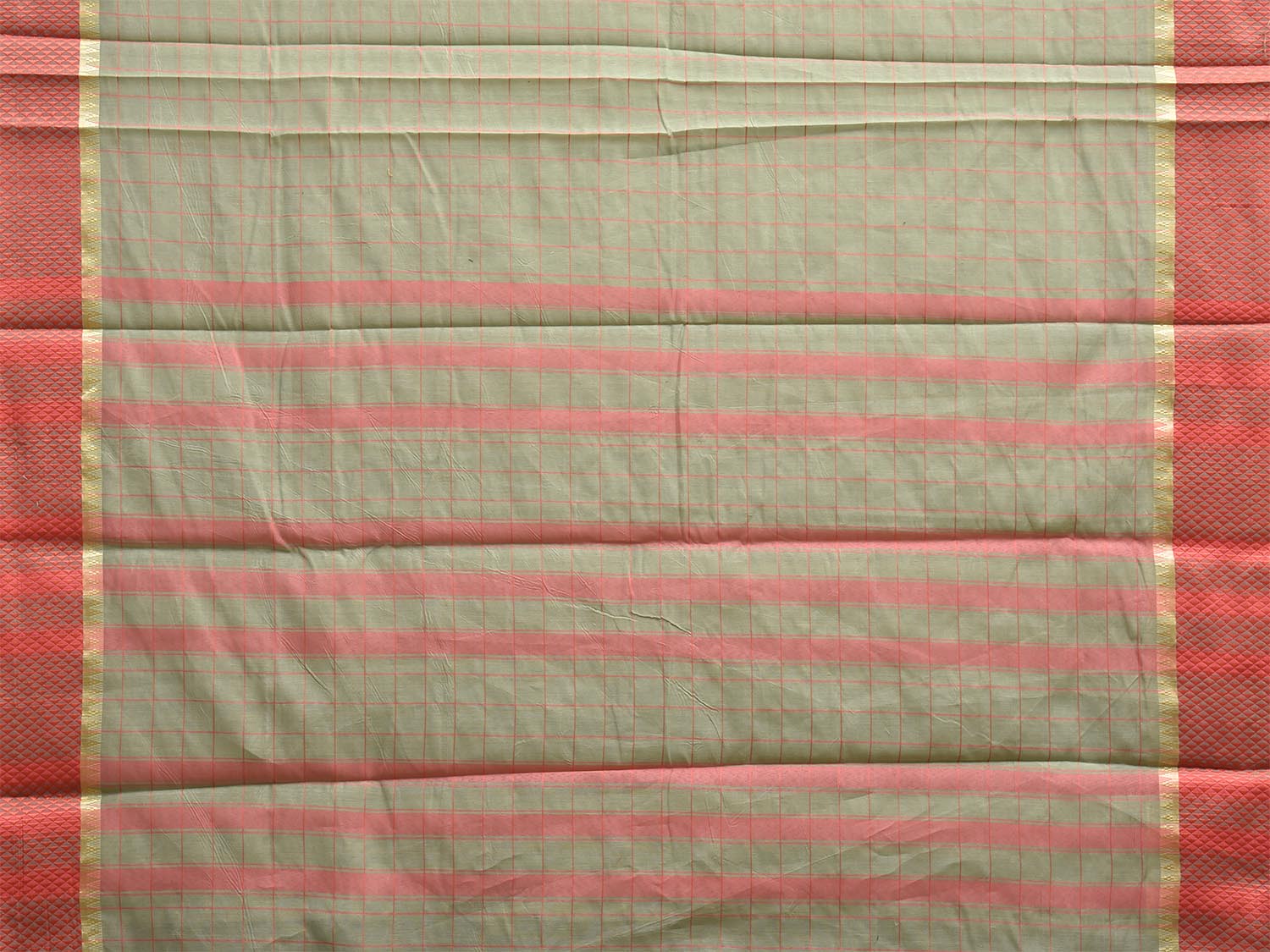 Light Green and Red Bamboo Cotton Saree with Big Checks Design No Blouse bc0999