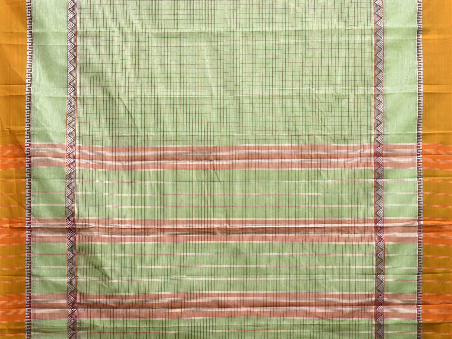 Light Green and Yellow Narayanpet Cotton Handloom Saree with Checks Design No Blouse np1339