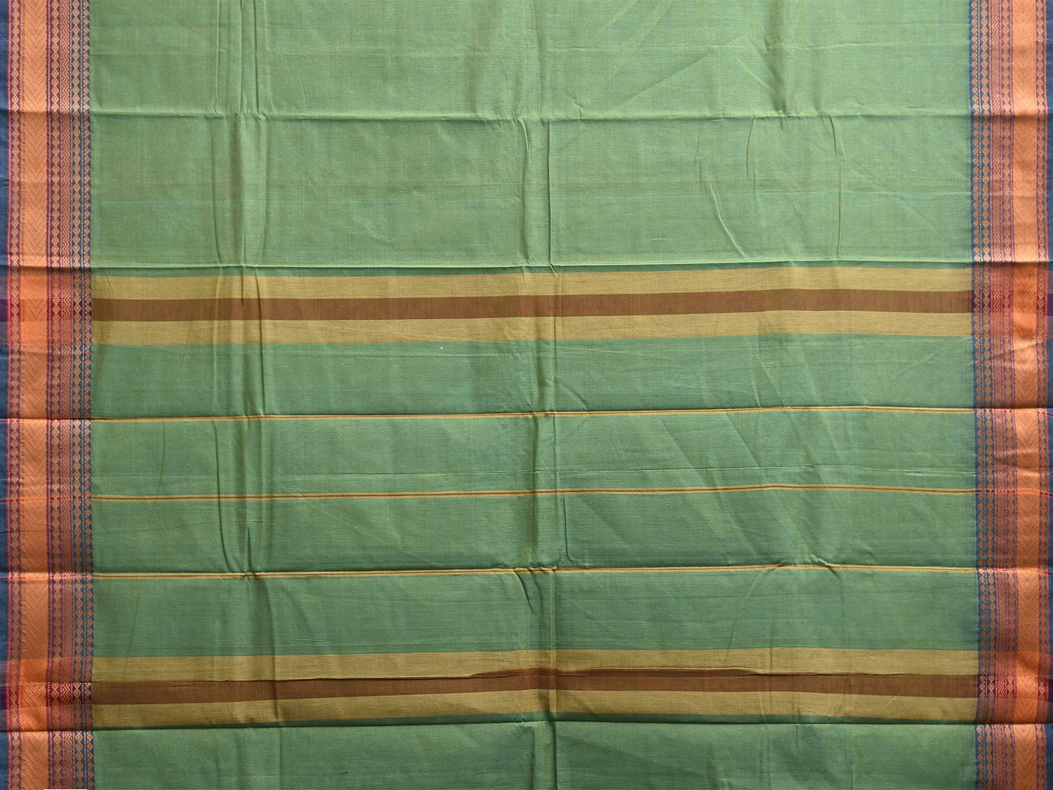 Light Green Kanchipuram Cotton Plain Saree with Strips Pallu and Border Design k0944