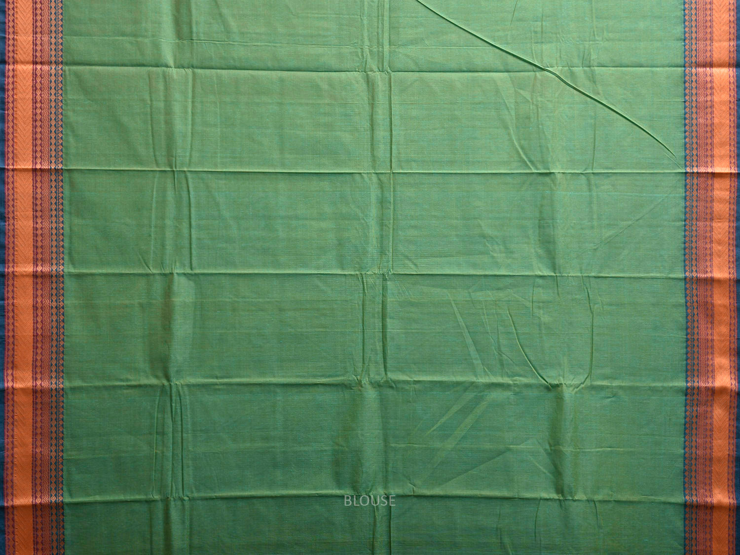 Light Green Kanchipuram Cotton Plain Saree with Strips Pallu and Border Design. Traditional Simple South Indian Attire Saree for any Casual Occasions. As it’s a cotton saree we advice gentle handwash separately for fabric care.