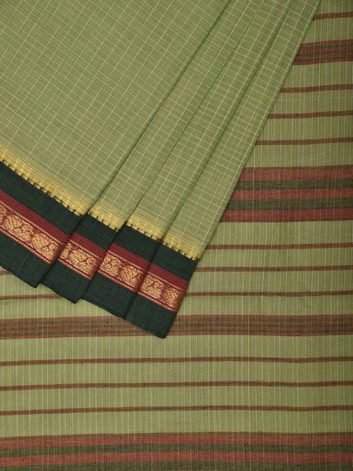 Light Green Narayanpet Cotton Handloom Saree with Checks Design No Blouse np0999