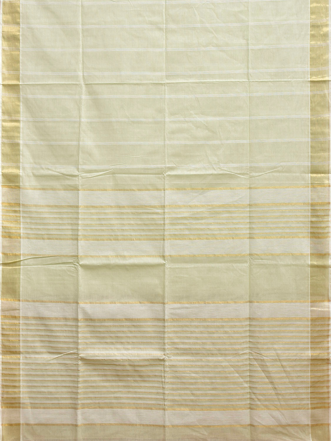 Light Green Venkatagiri Cotton Saree with Strips Body and Pallu Design v0289