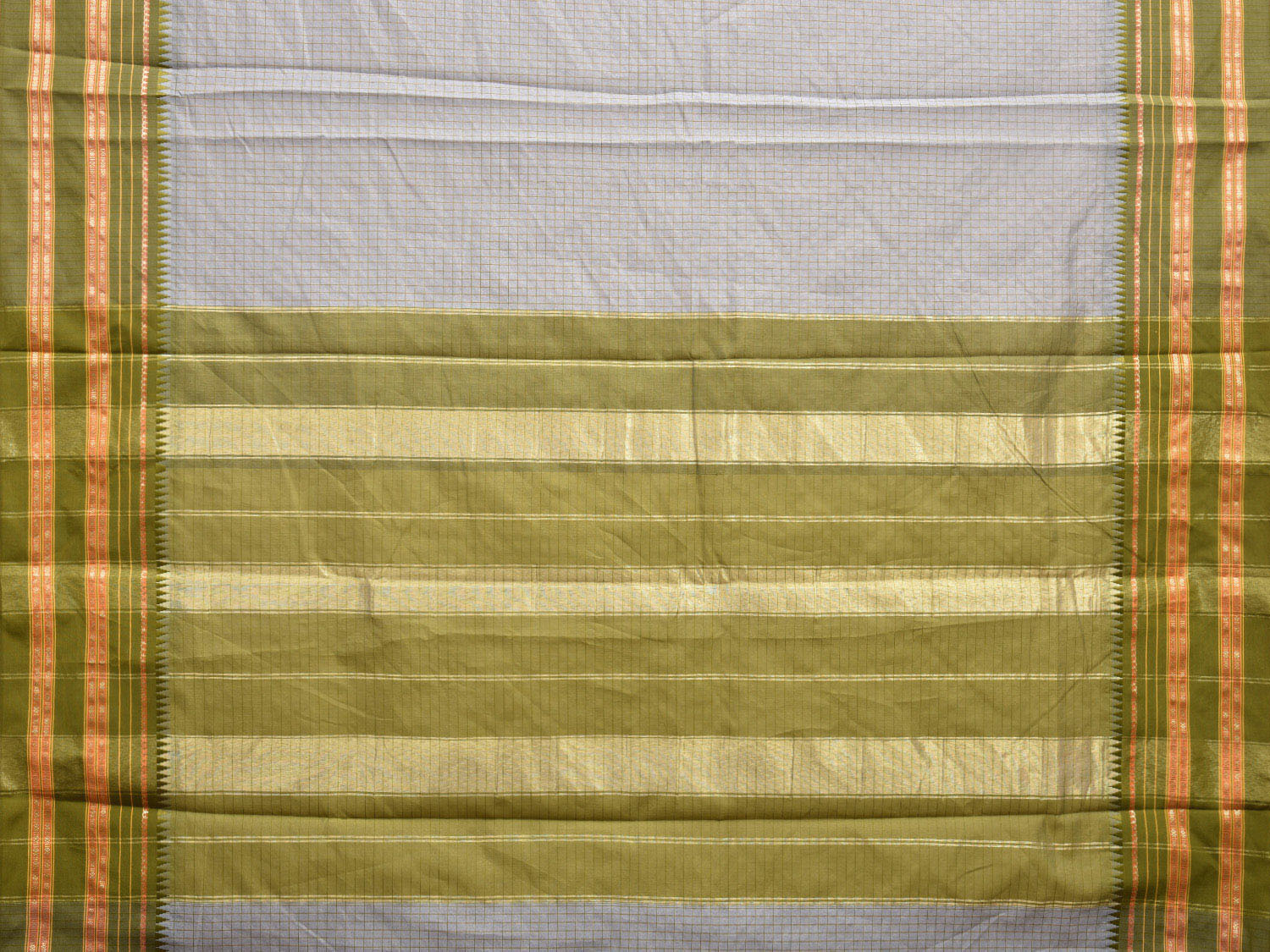 Light Grey and Green Bamboo Cotton Viscose Silk Saree with Checks Design No Blouse bc0499