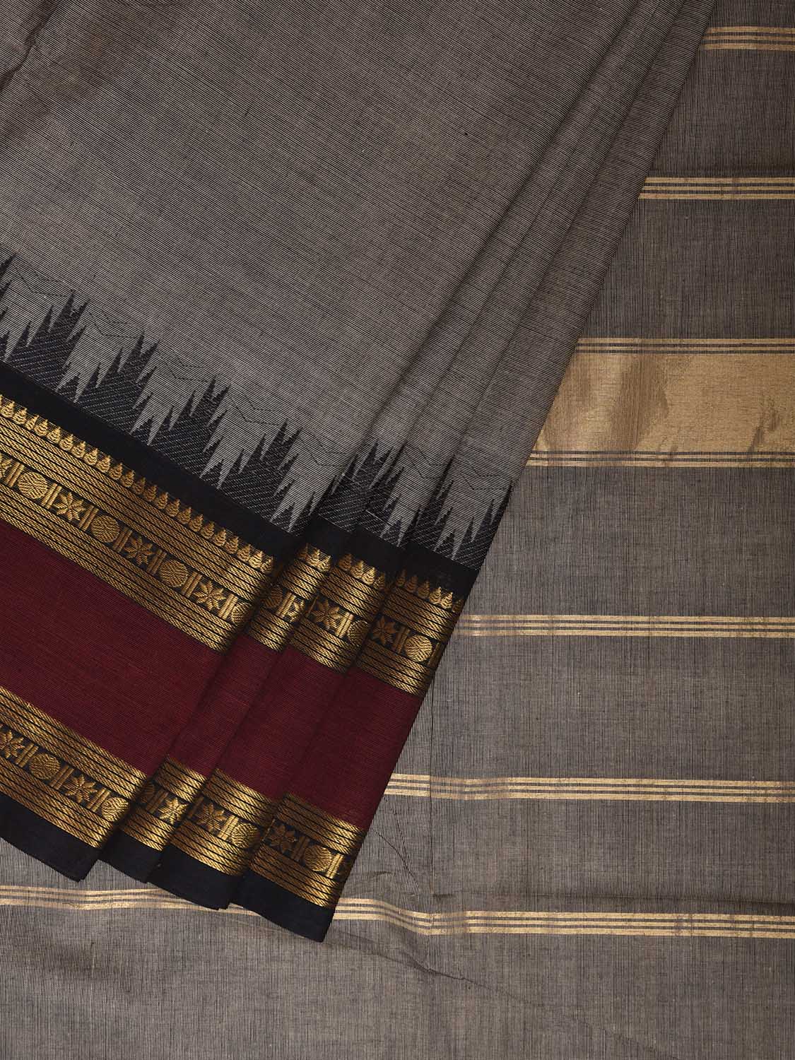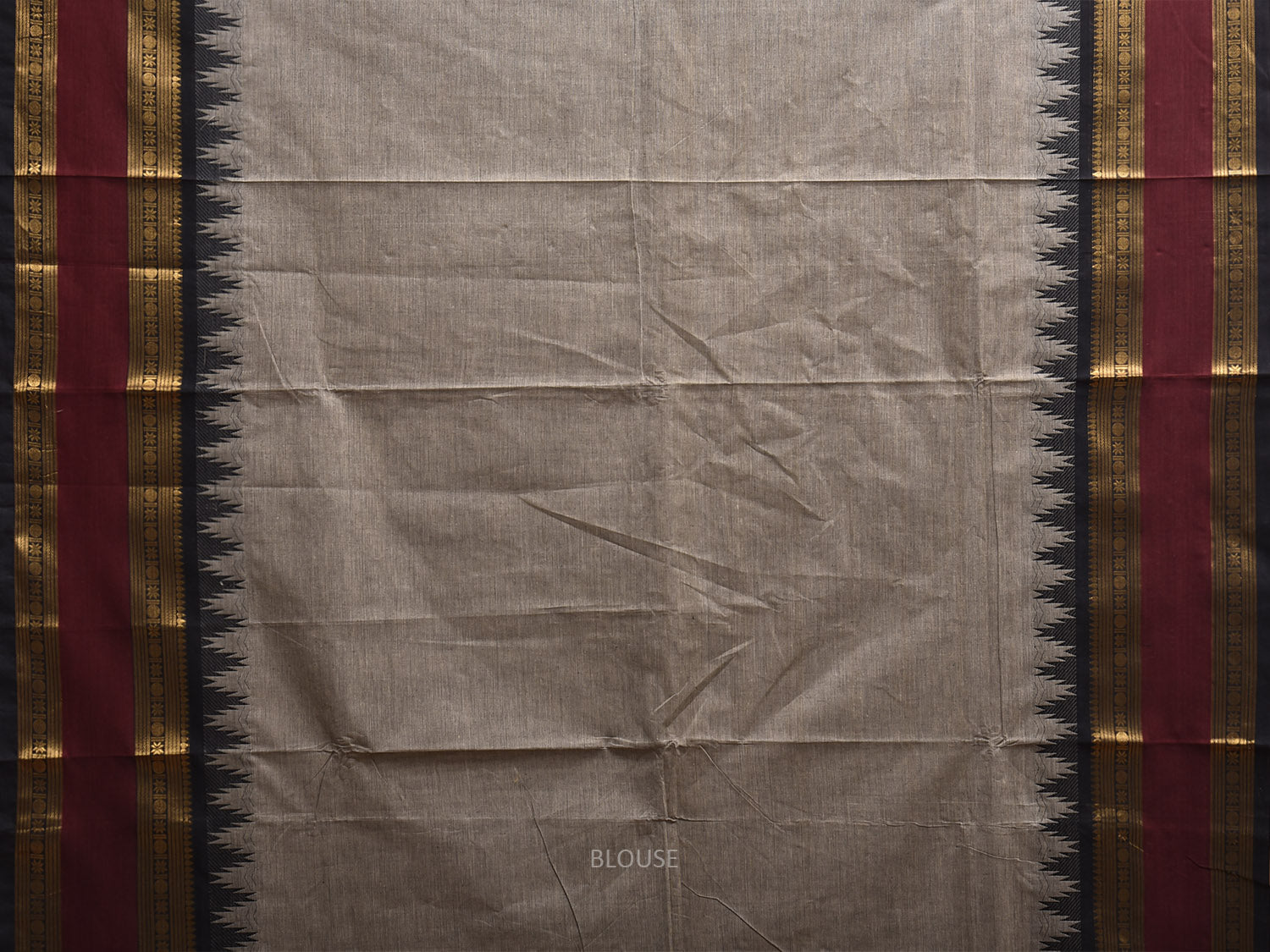 Light Grey and Maroon Kanchipuram Cotton Plain Saree with Big Temple Border Design k0908
