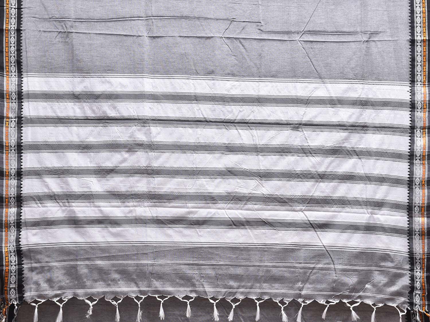 Light Grey ilkal Cotton Viscose Plain Saree with Strips Pallu Design. For fabric care we advise gentle handwash separately.