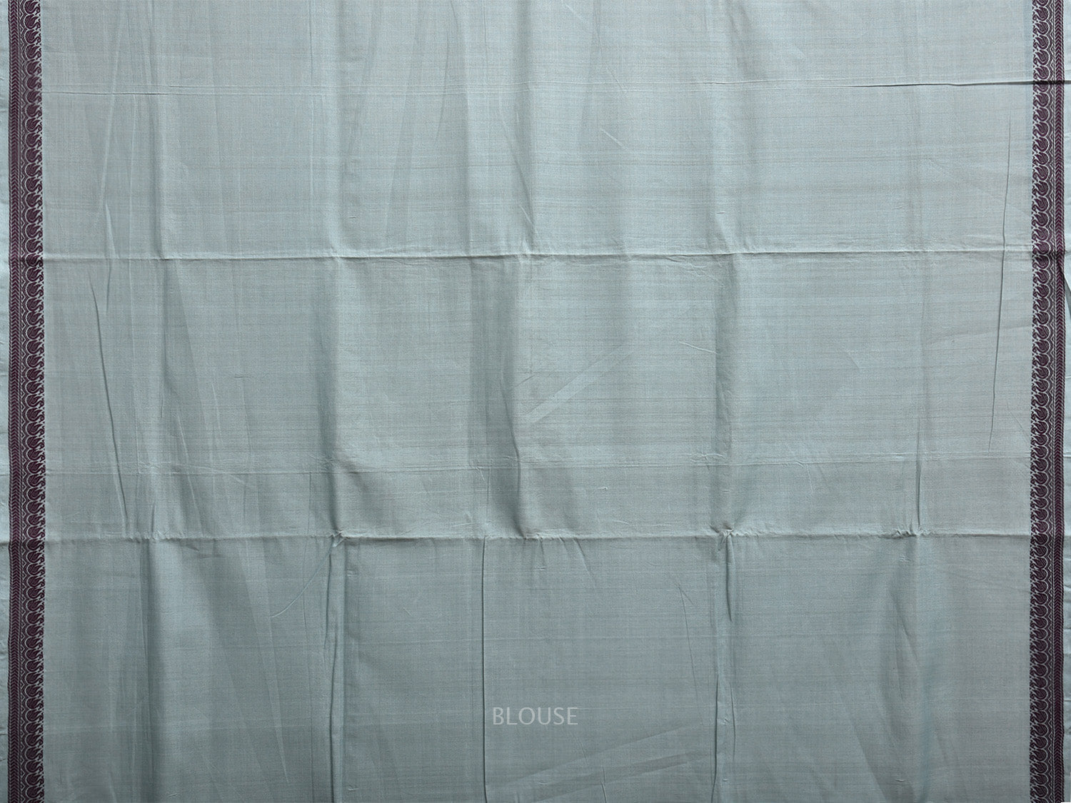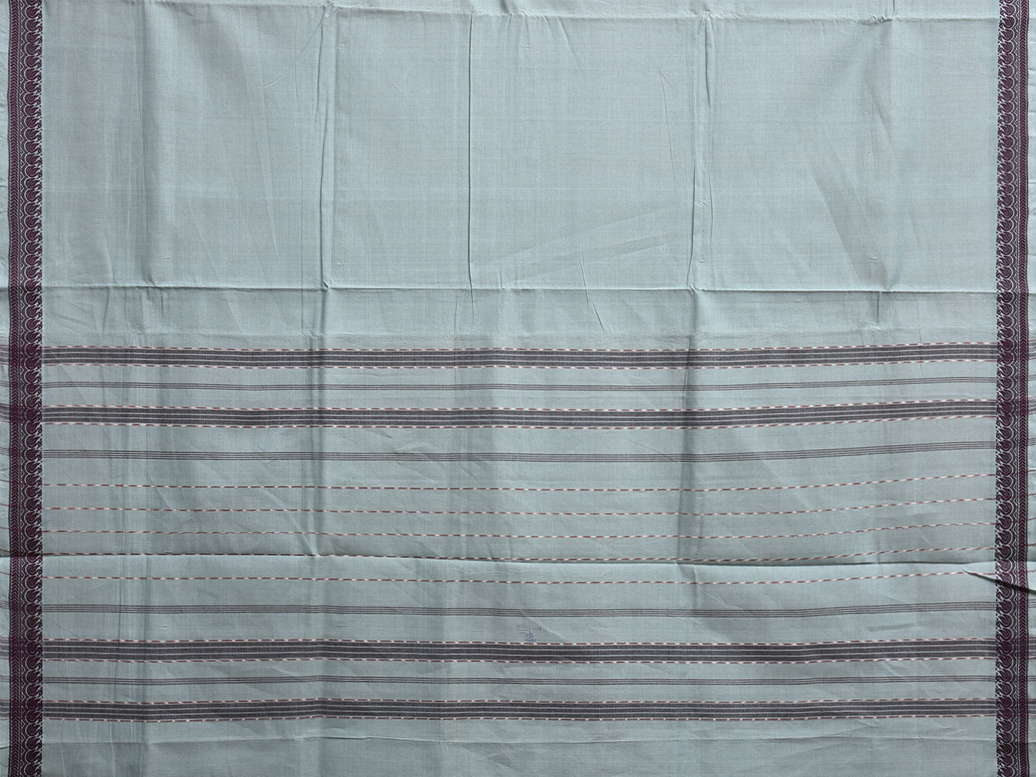 Light Grey Mangalgiri Cotton Plain Saree with Border and Strips Pallu Design mn0095