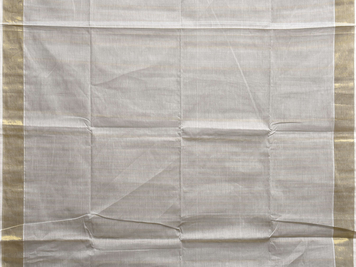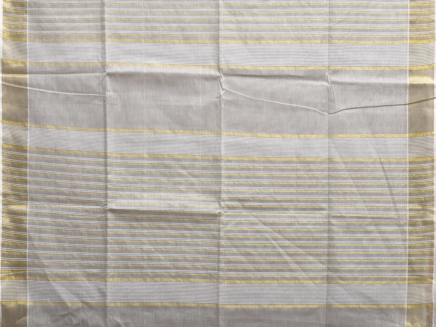 Light Grey Venkatagiri Cotton Saree with Strips Body and Pallu Design v0153