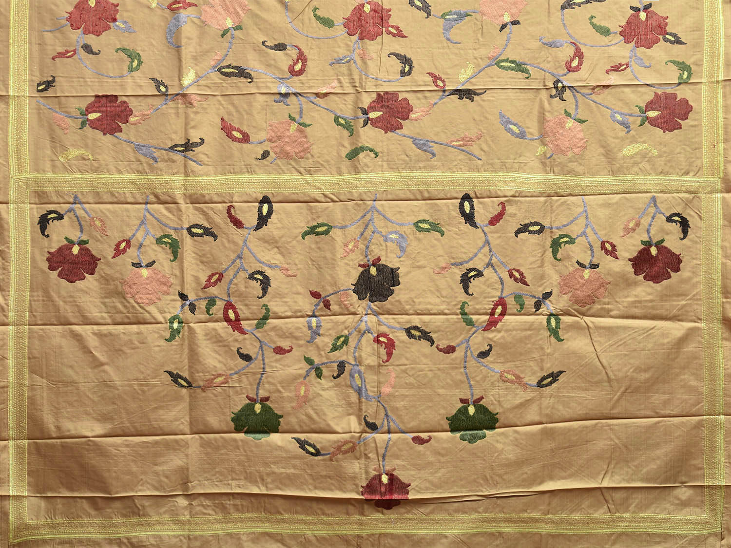 Light Olive Heavy Silk Handloom Saree with Floral Embroidary Work Design. We advice dry clean for fabric care.