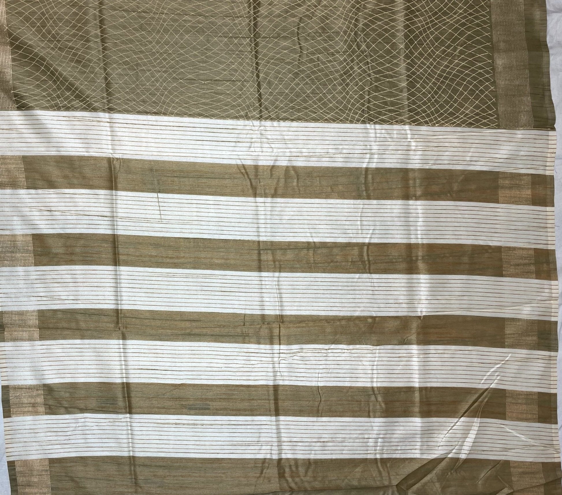 Light Olive Khadi Print with Zari Border Saree Design pr0028ai