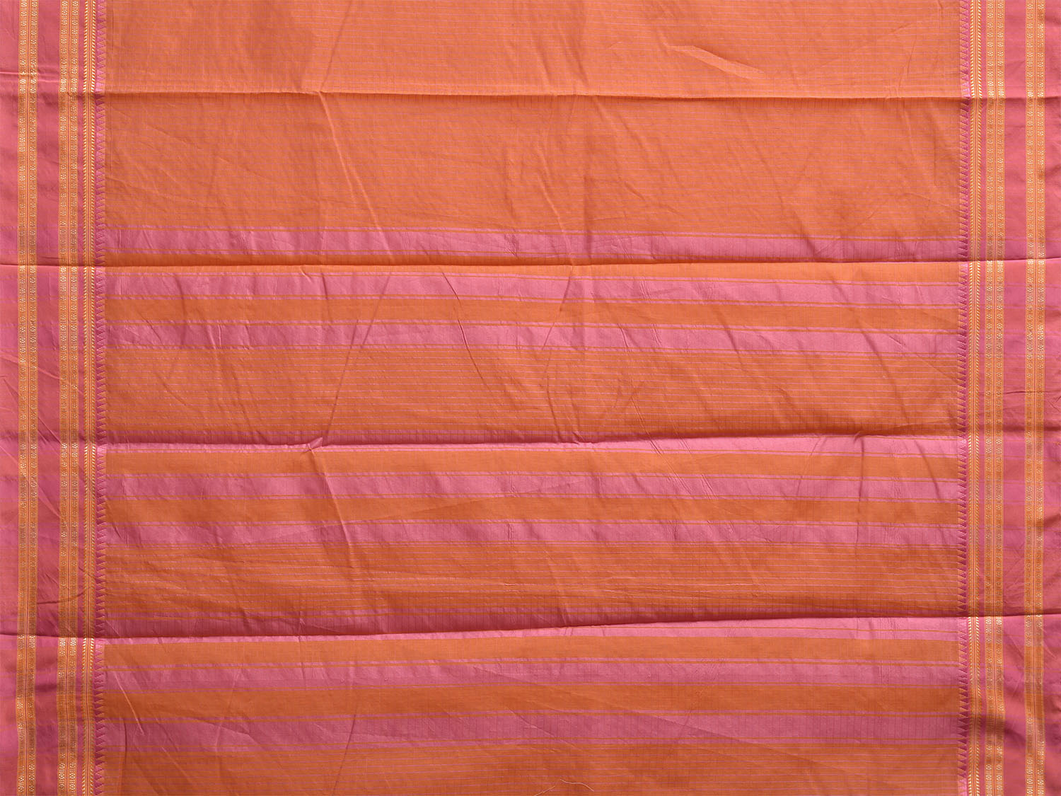 Light Orange and Pink Bamboo Cotton Saree with Checks Design No Blouse bc0942