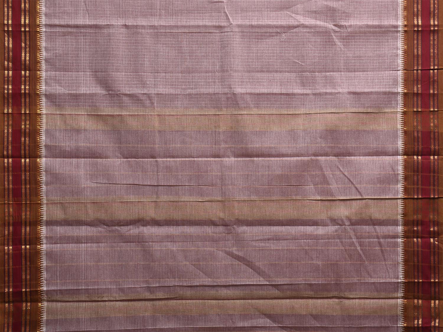 Light Peach and Dark Fawn Narayanpet Cotton Handloom Saree with Checks Design No Blouse np1323