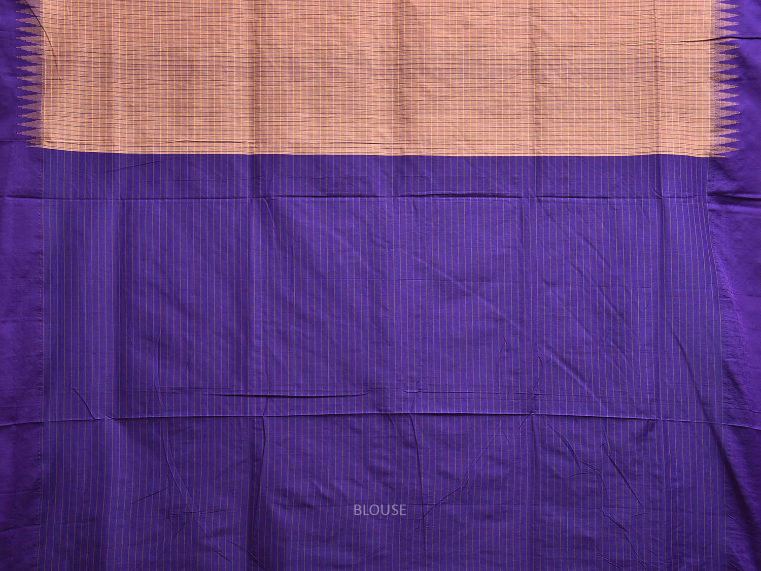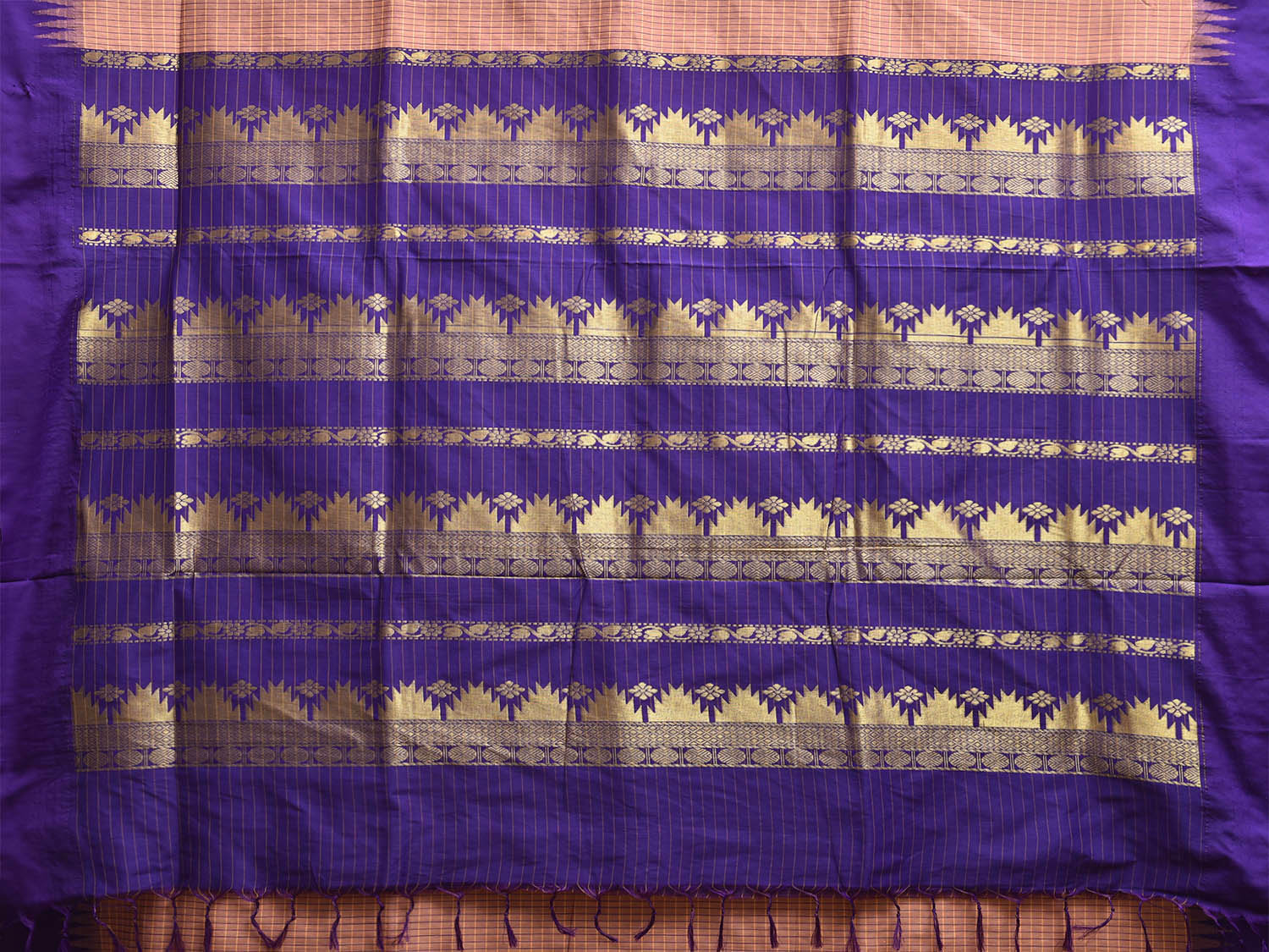 Light Peach and Indigo Gadwal Cotton Viscose Saree with Checks and Pallu Design g0523