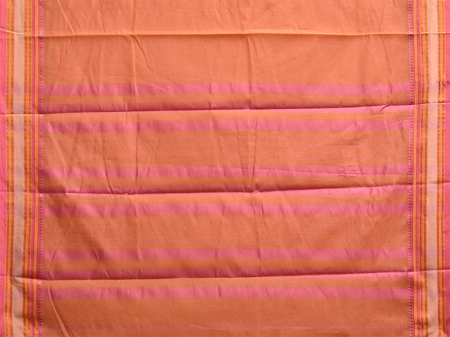 Light Peach and Pink Bamboo Cotton Plain Saree with Strips Pallu Design No Blouse bc0980