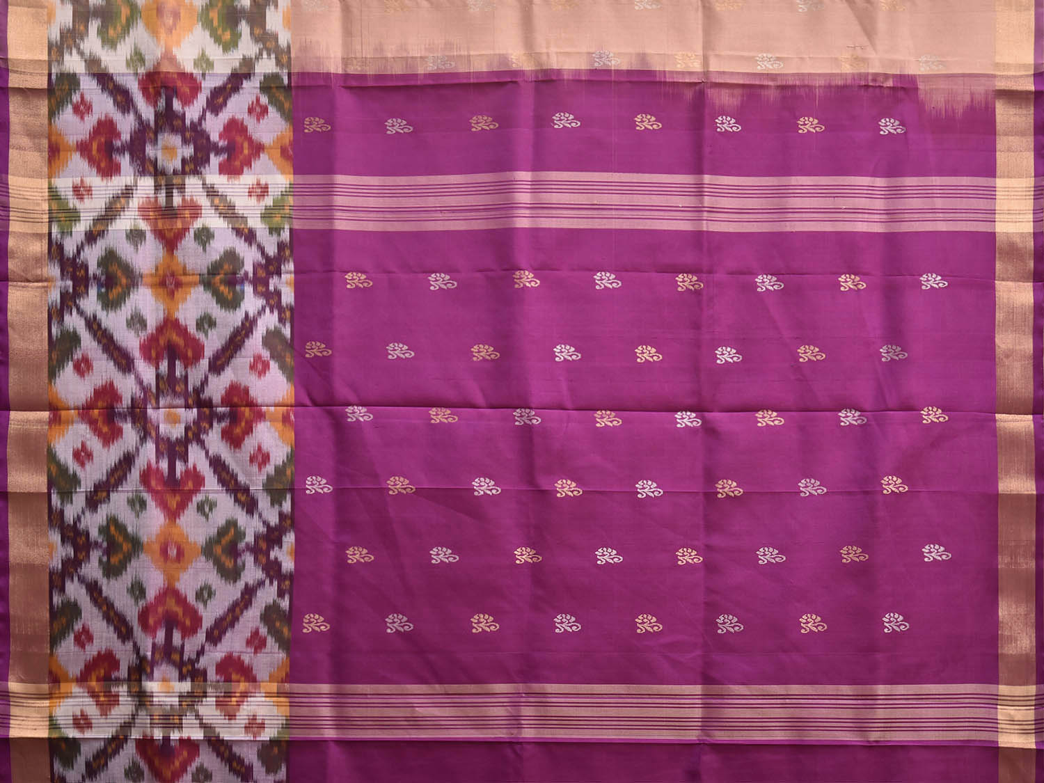 Light Peach and Purple Uppada Silk Handloom Saree with One Side Ikat Border Design
