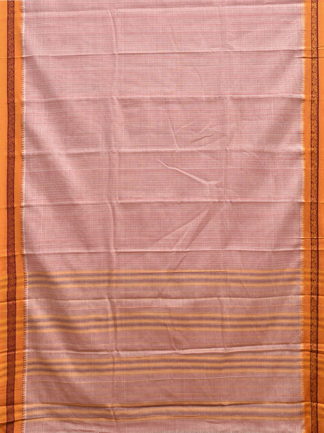 Light Peach and Yellow Narayanpet Cotton Handloom Saree with Strips Design No Blouse np1281