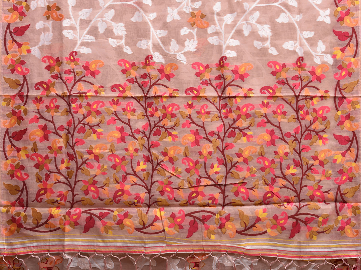 Light Peach Dhakai Jamdani Cotton Viscose Saree with All Over Floral Design dj0194