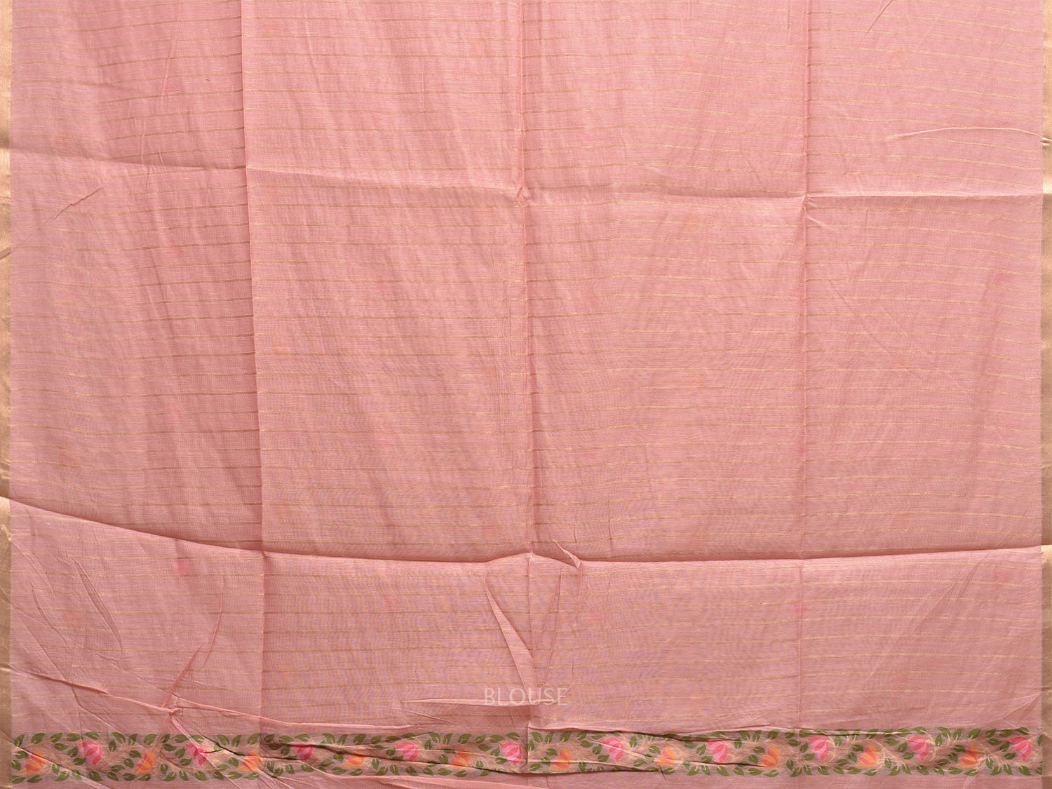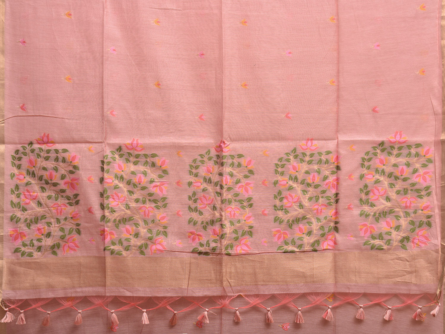Light Peach Dhakai Jamdani Cotton Viscose Saree with Body Buta and Floral Pallu Design dj0051