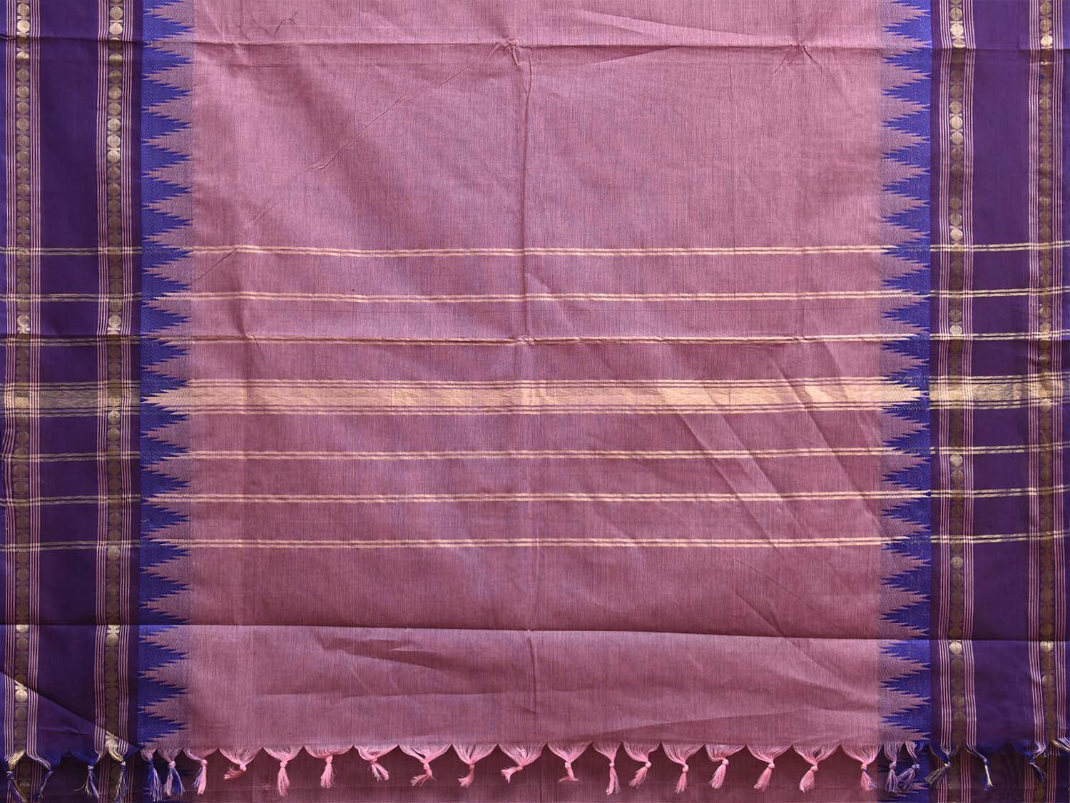 Light Pink and Blue Kanchipuram Cotton Plain Saree with Big Temple Border Design. Traditional Simple South Indian Attire Saree for any Casual Occasions. As it’s a cotton saree we advice gentle handwash separately for fabric care. This saree has no blouse.