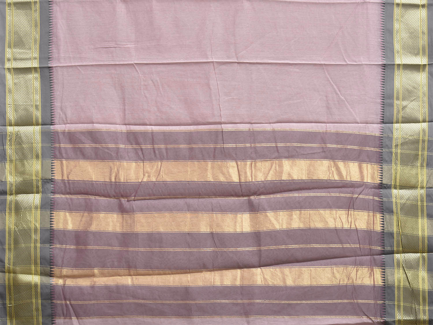 Light Pink and Grey Bamboo Cotton Plain Saree with Contrast Pallu Design No Blouse bc1044